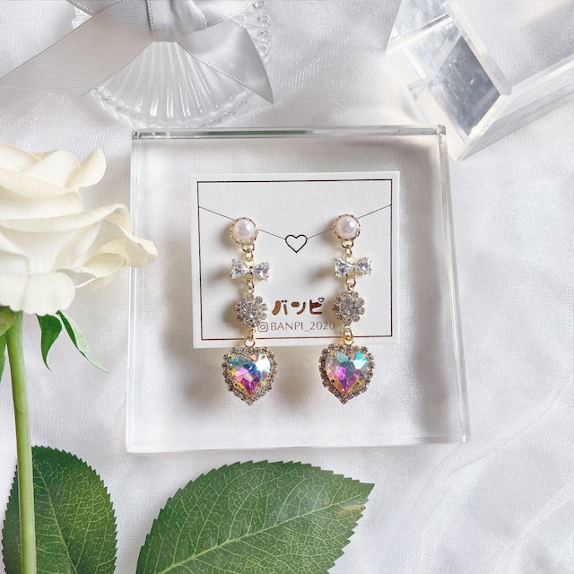 ビジューキラキラハートピアス・オーロラ