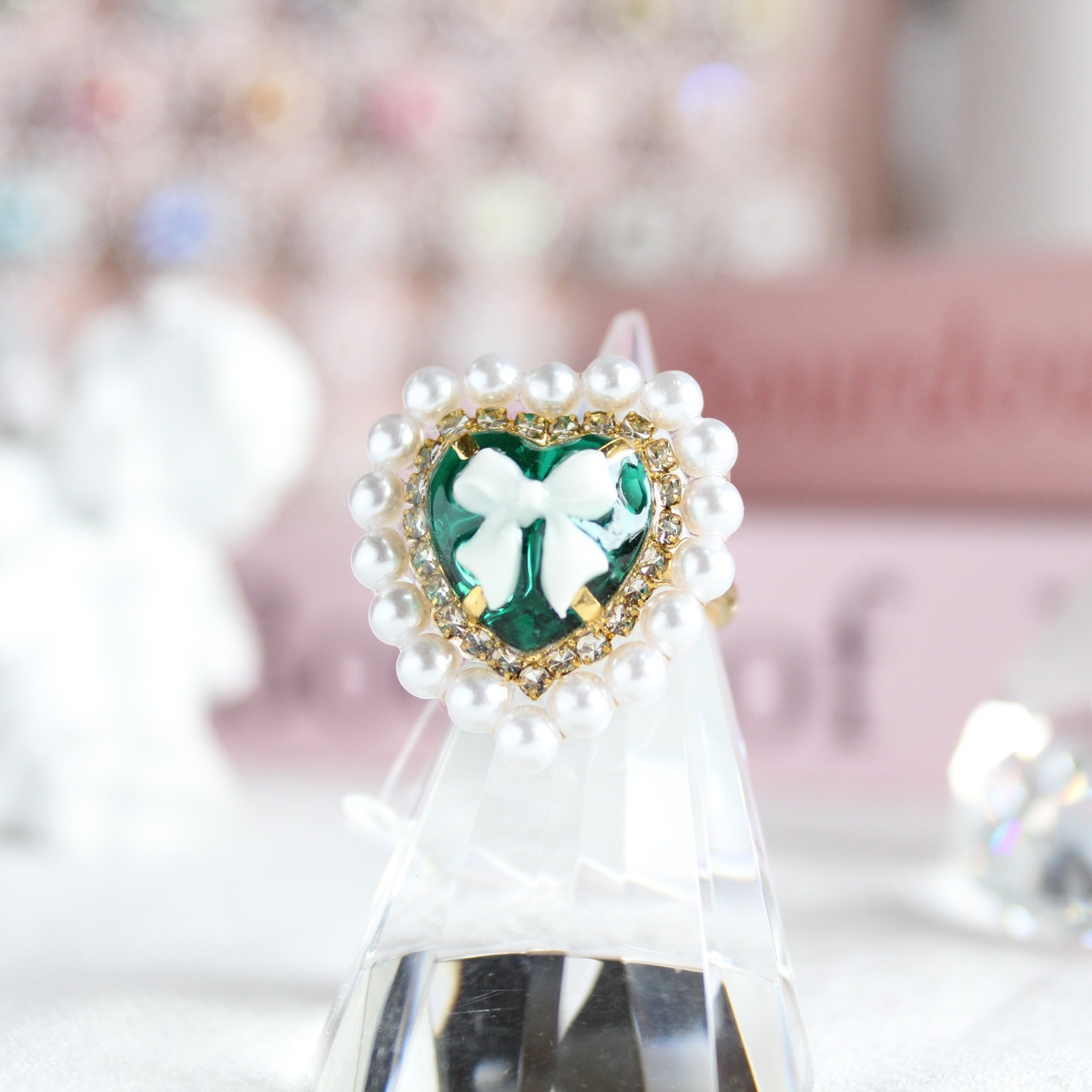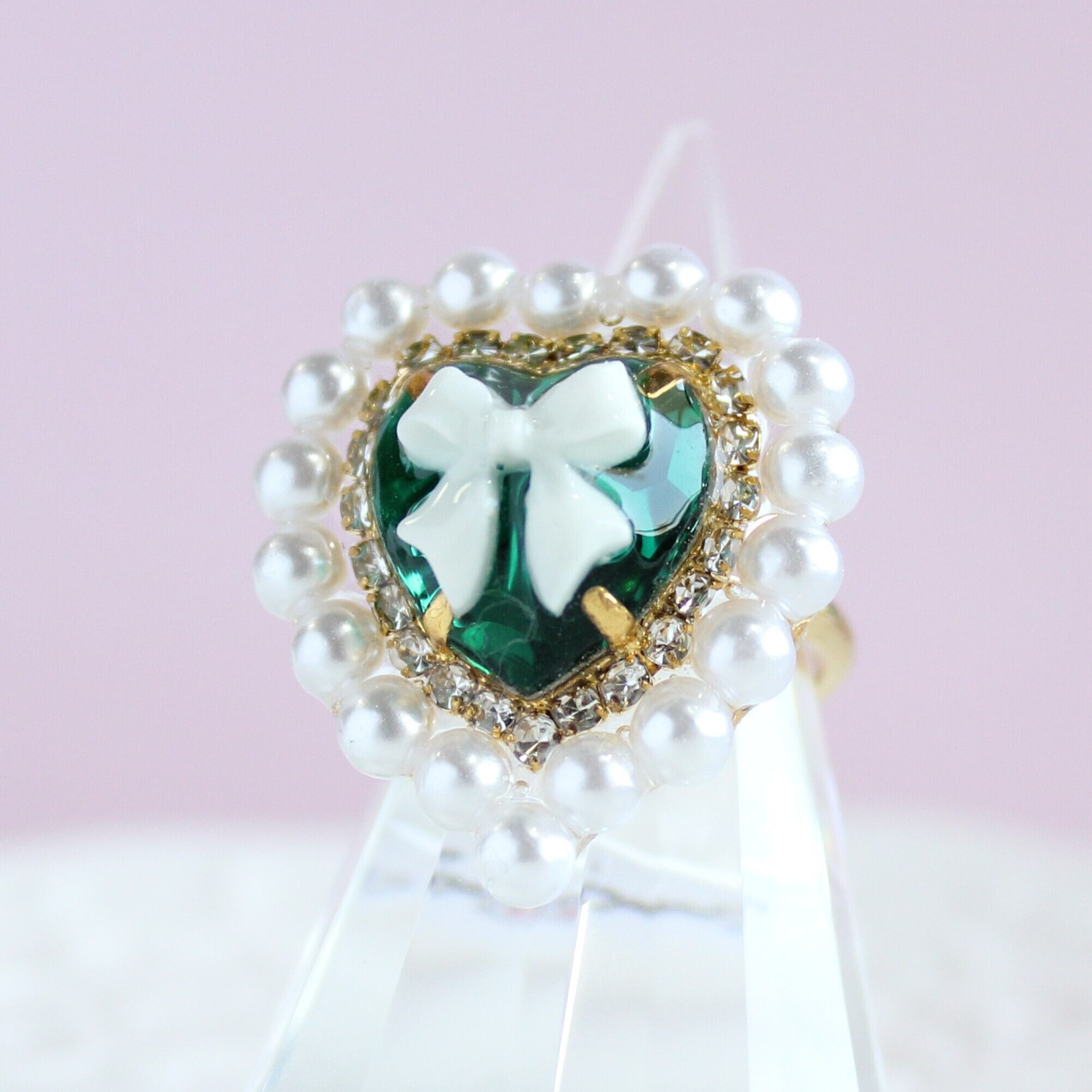 パールハートビジューリング・グリーン