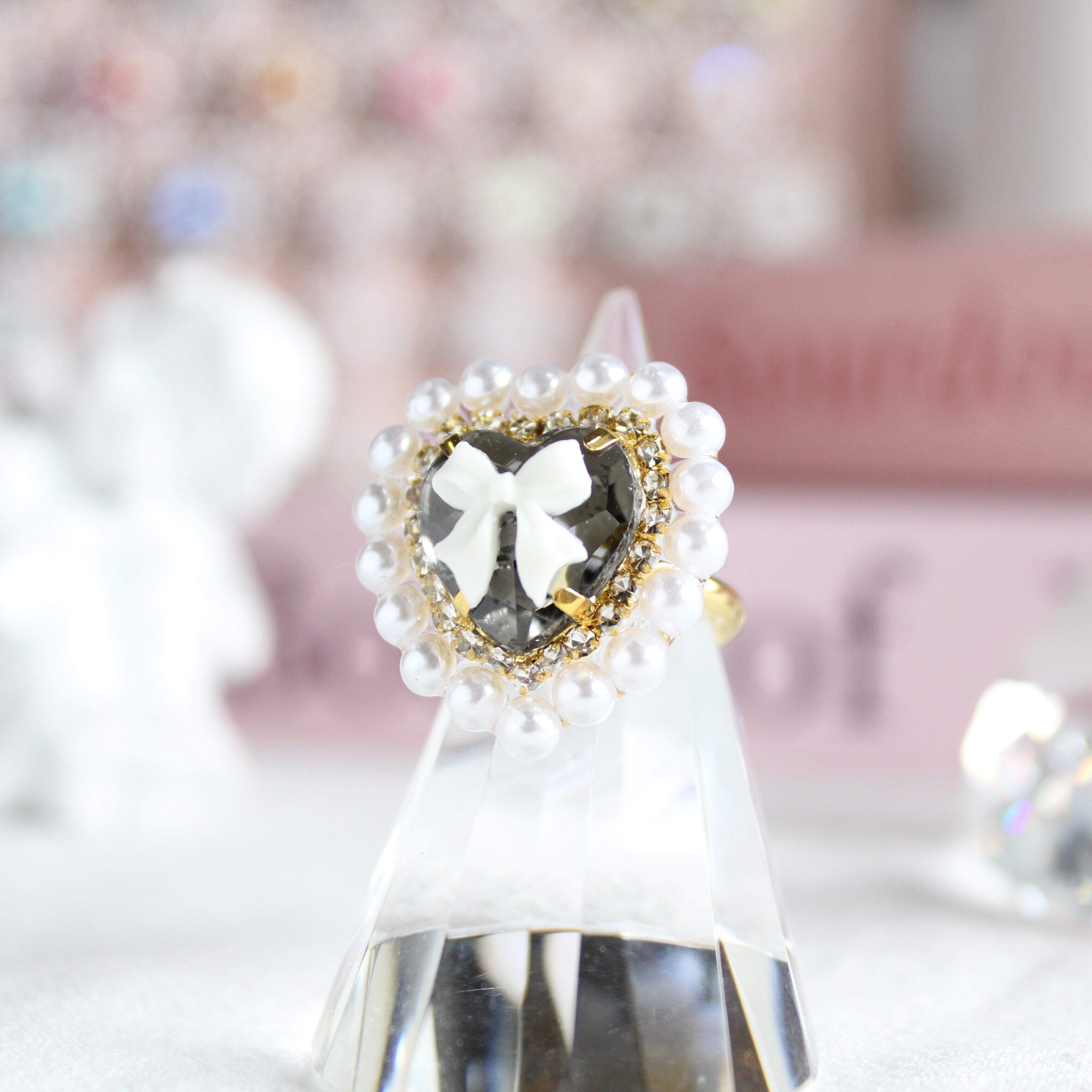 パールハートビジューリング・ブラック