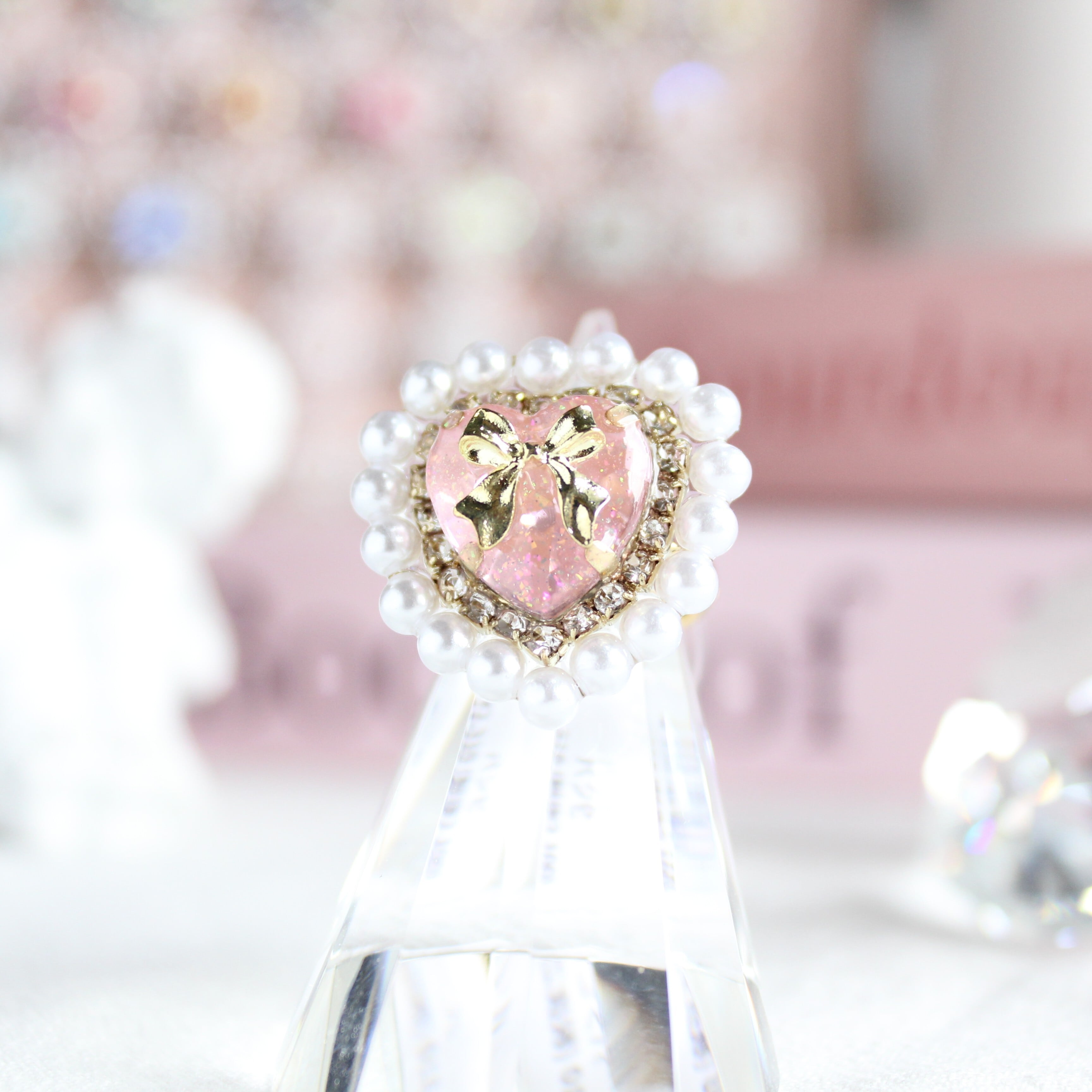 ラメパールハートビジューリング・ピンク
