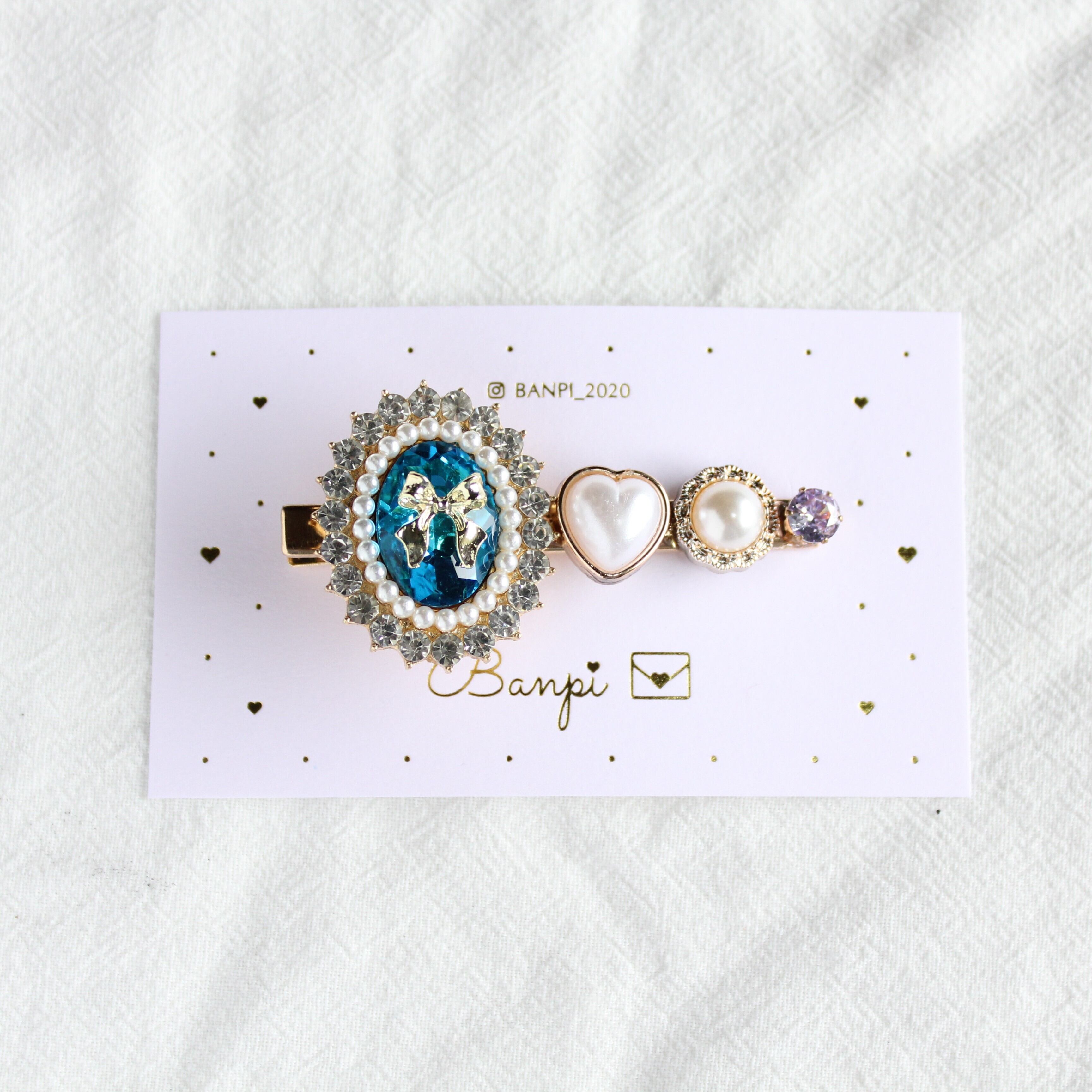 【左用】ビジューヘアクリップ・ブルー