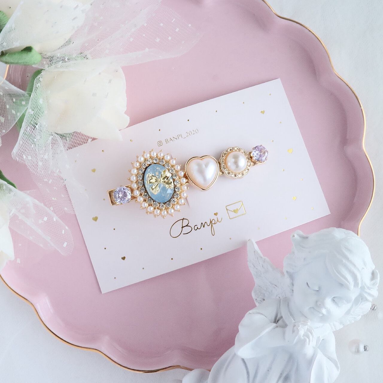 【右用】ビジューキラキラヘアクリップ・ブルー