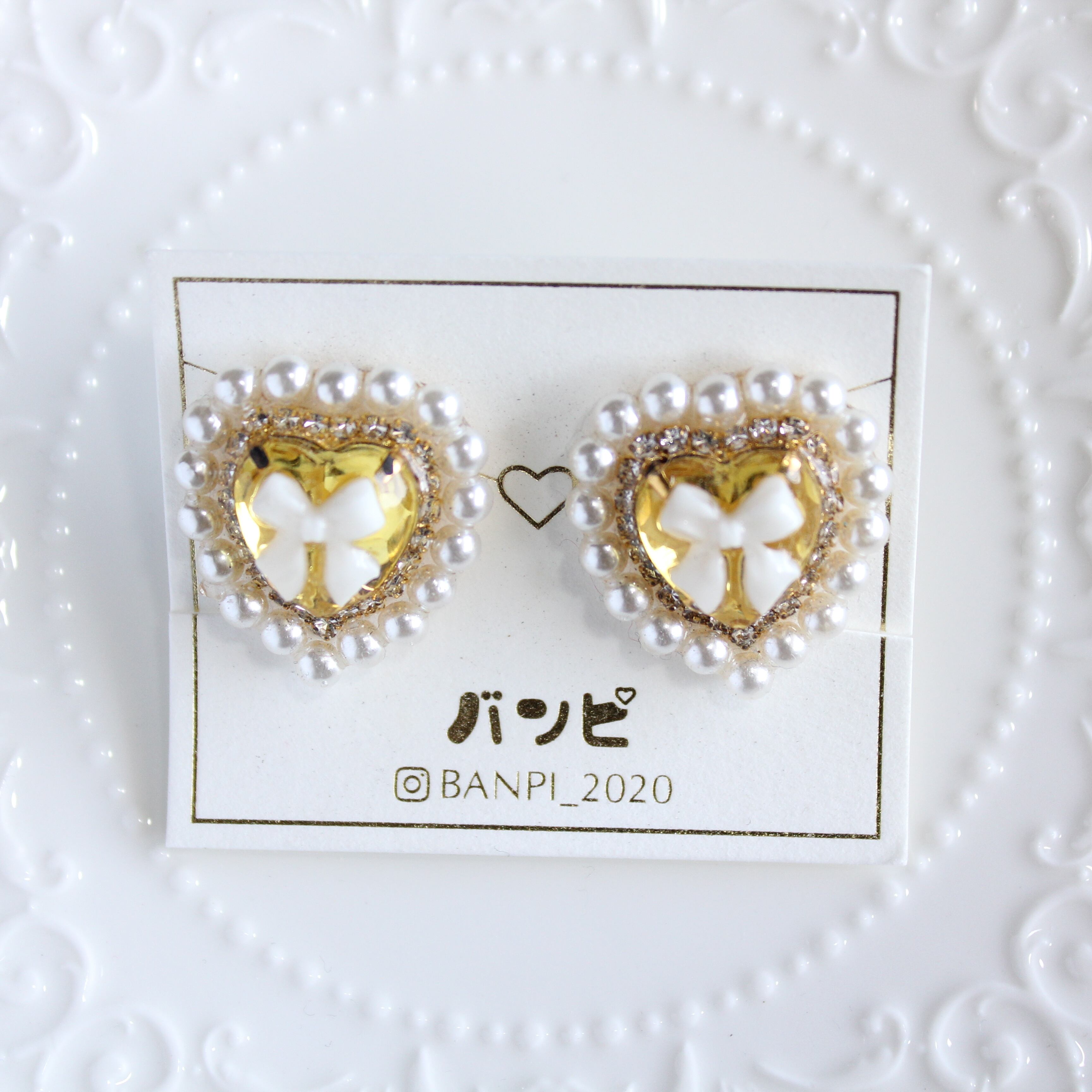 パールハートビジューイヤリング・イエロー
