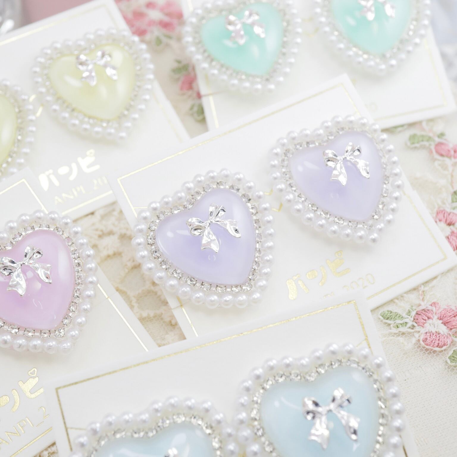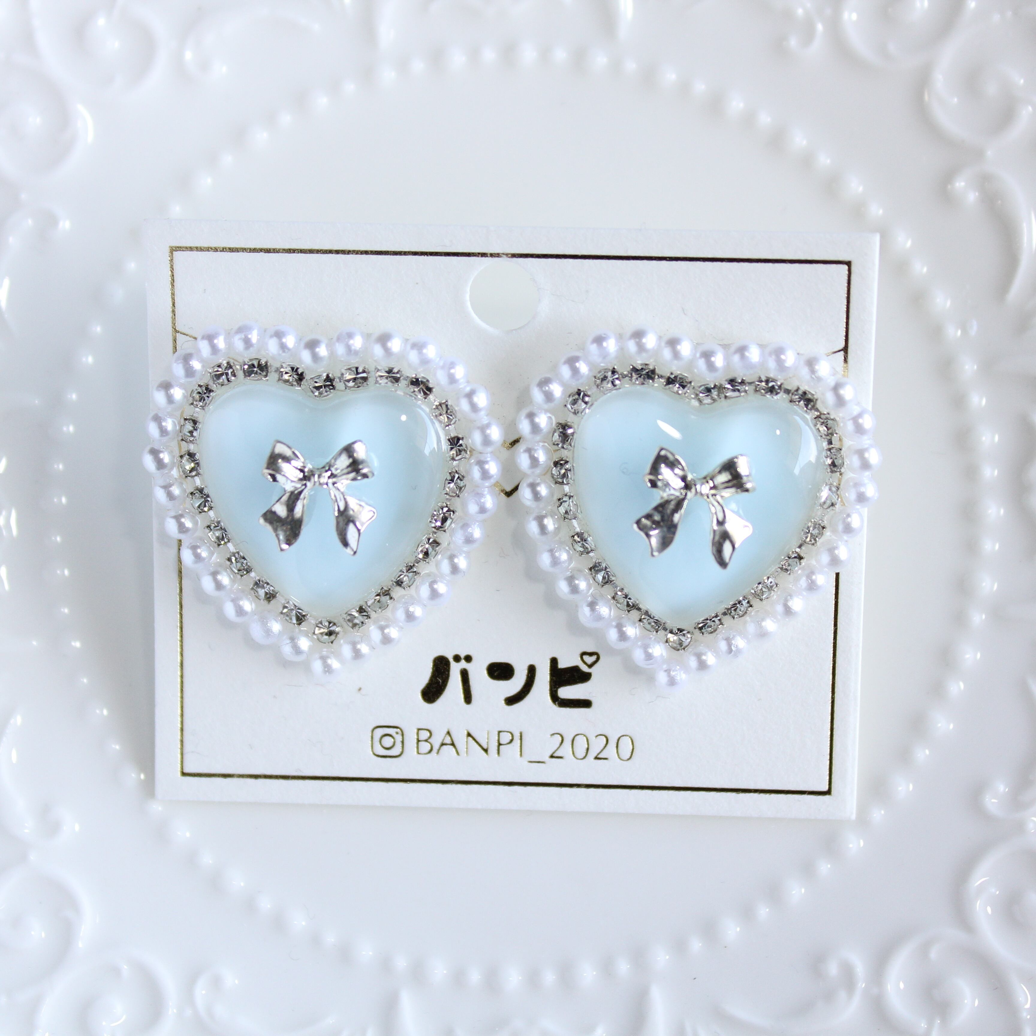 パールハートパステルイヤリング・ブルー