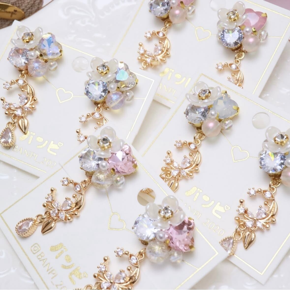 フラワービジューゆらゆらピアス・クリア