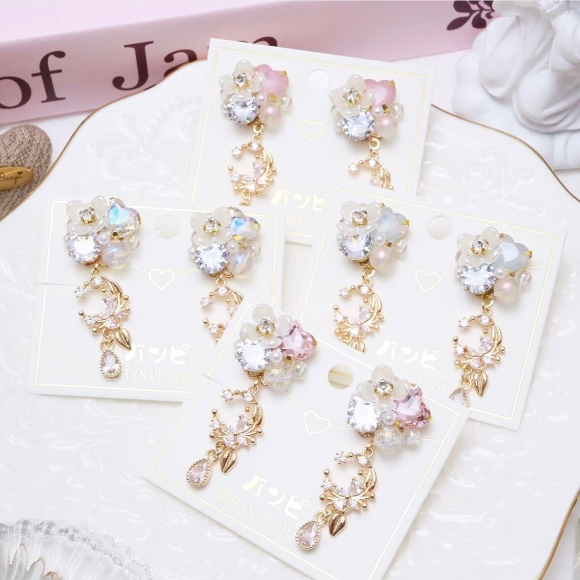 フラワービジューゆらゆらピアス・ミルキーホワイト