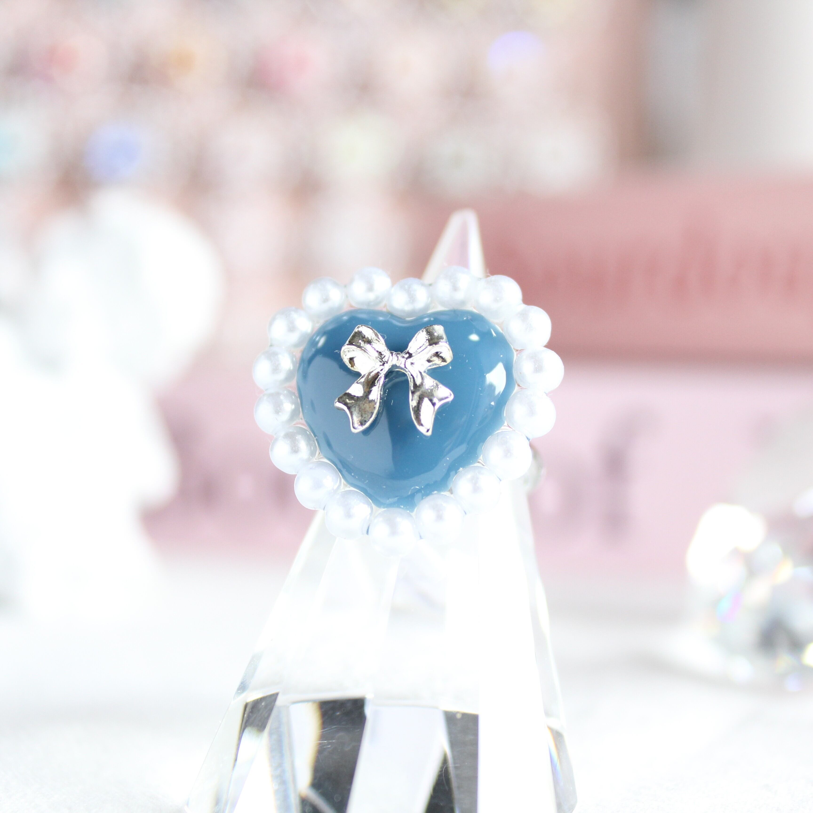パールハートシルバーリボンリング・ブルー