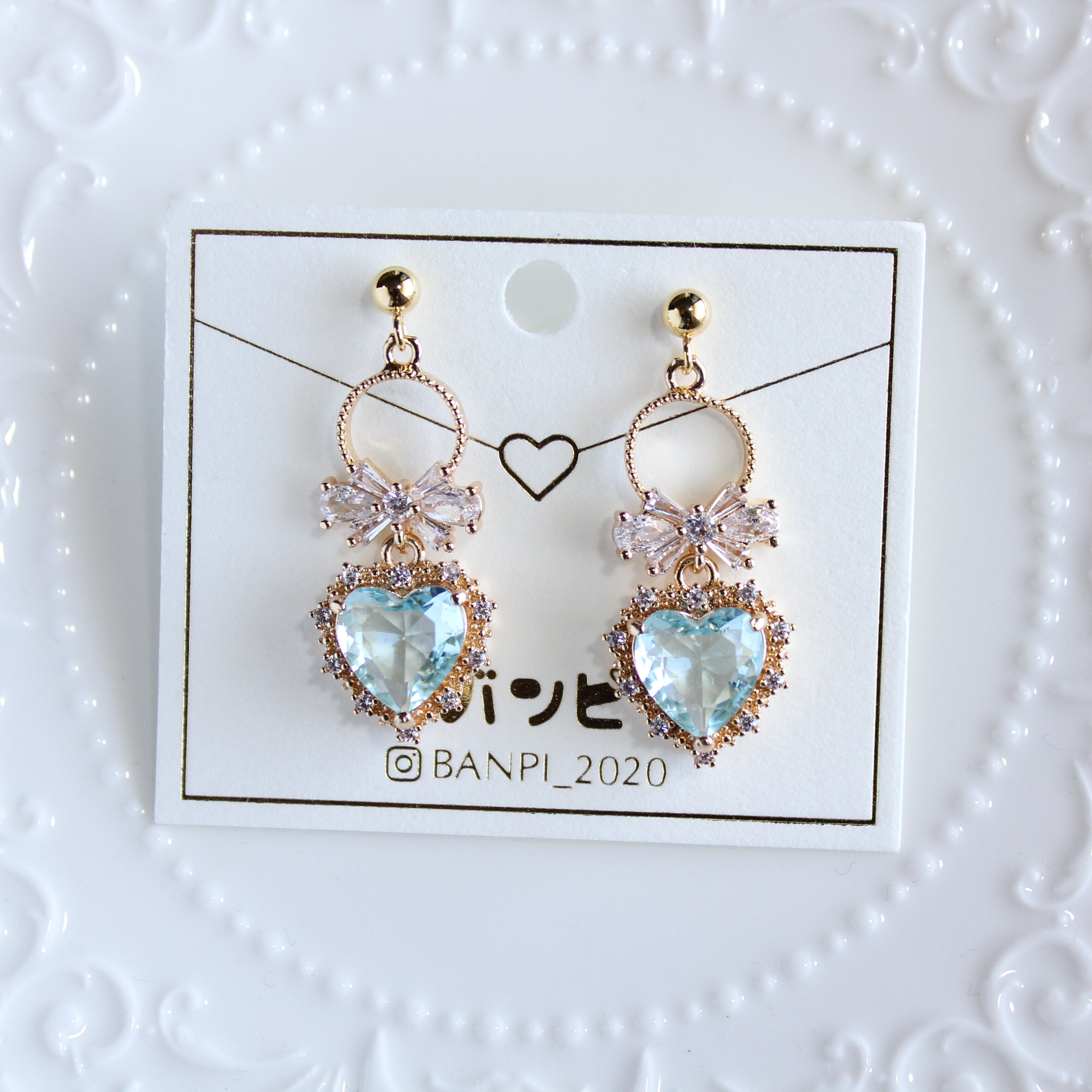 フープリボンハートイヤリング・ブルー