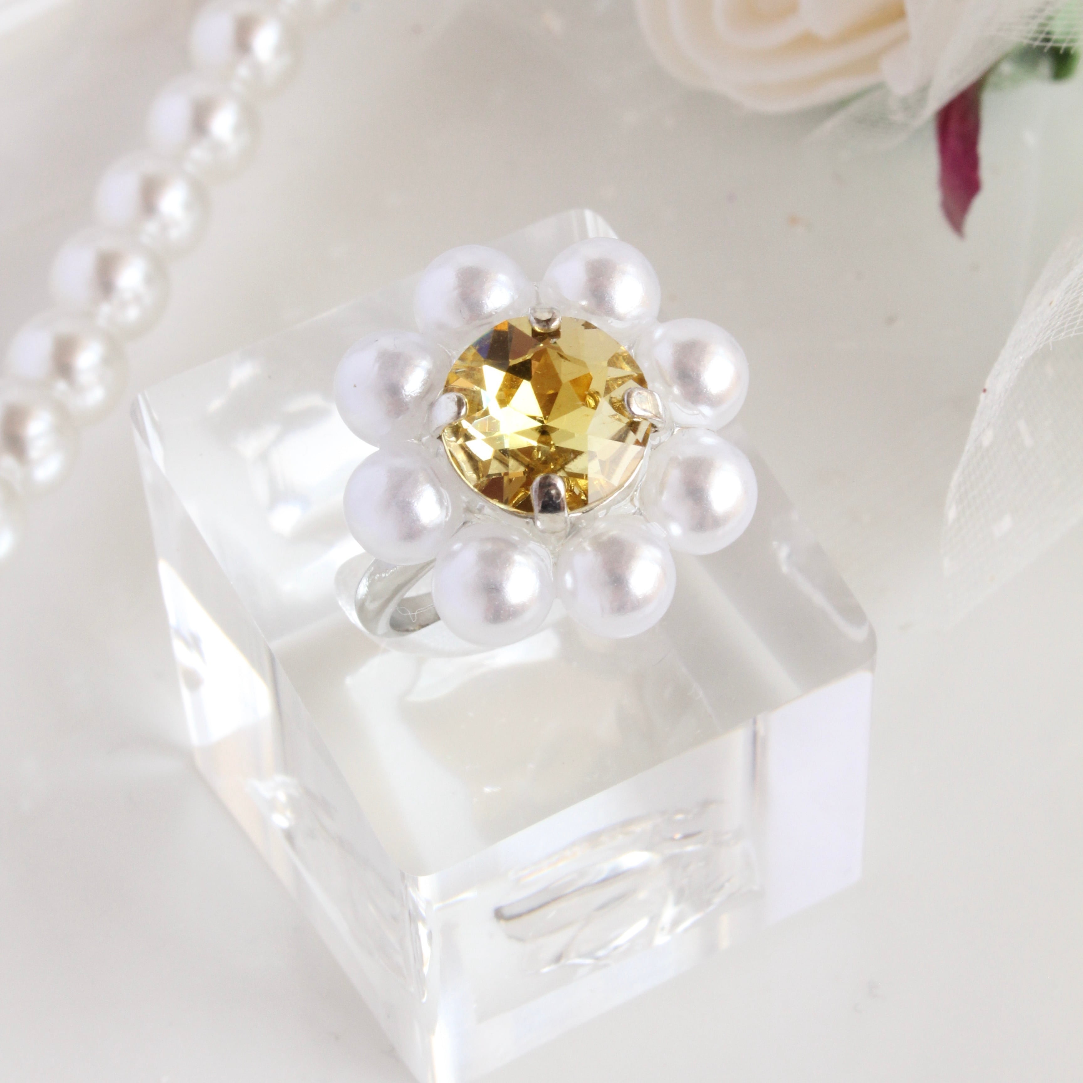 囲みパールクリスタルガラスビジューリング・イエロー